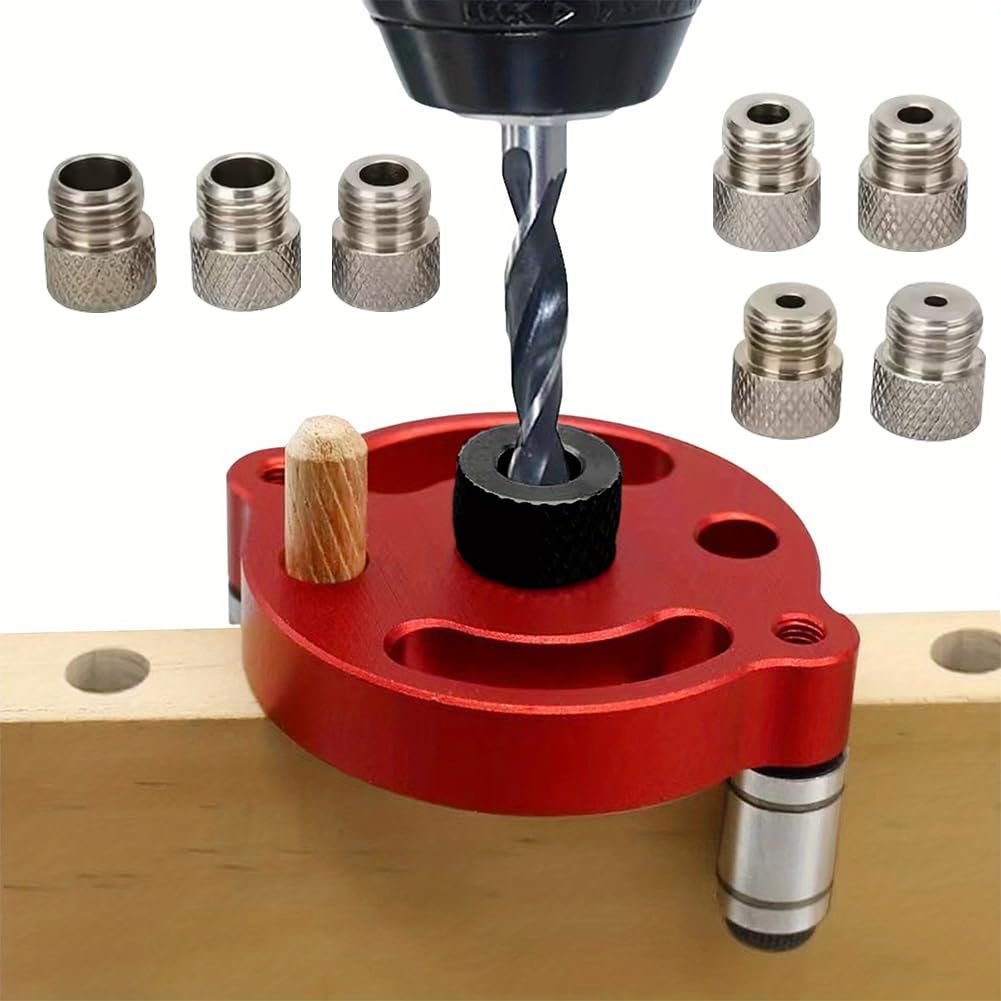 This all-in-one kit includes 8 precision-machined metal bushings in sizes 3mm, 4mm, 5mm, 6mm, 7mm, 8mm, 9mm, 10mm, covering every common dowel size for furniture, cabinets, shelves, and joinery projects. Swap bushings in seconds to match your drill bit, making it the only jig you need for all your woodworking needs.